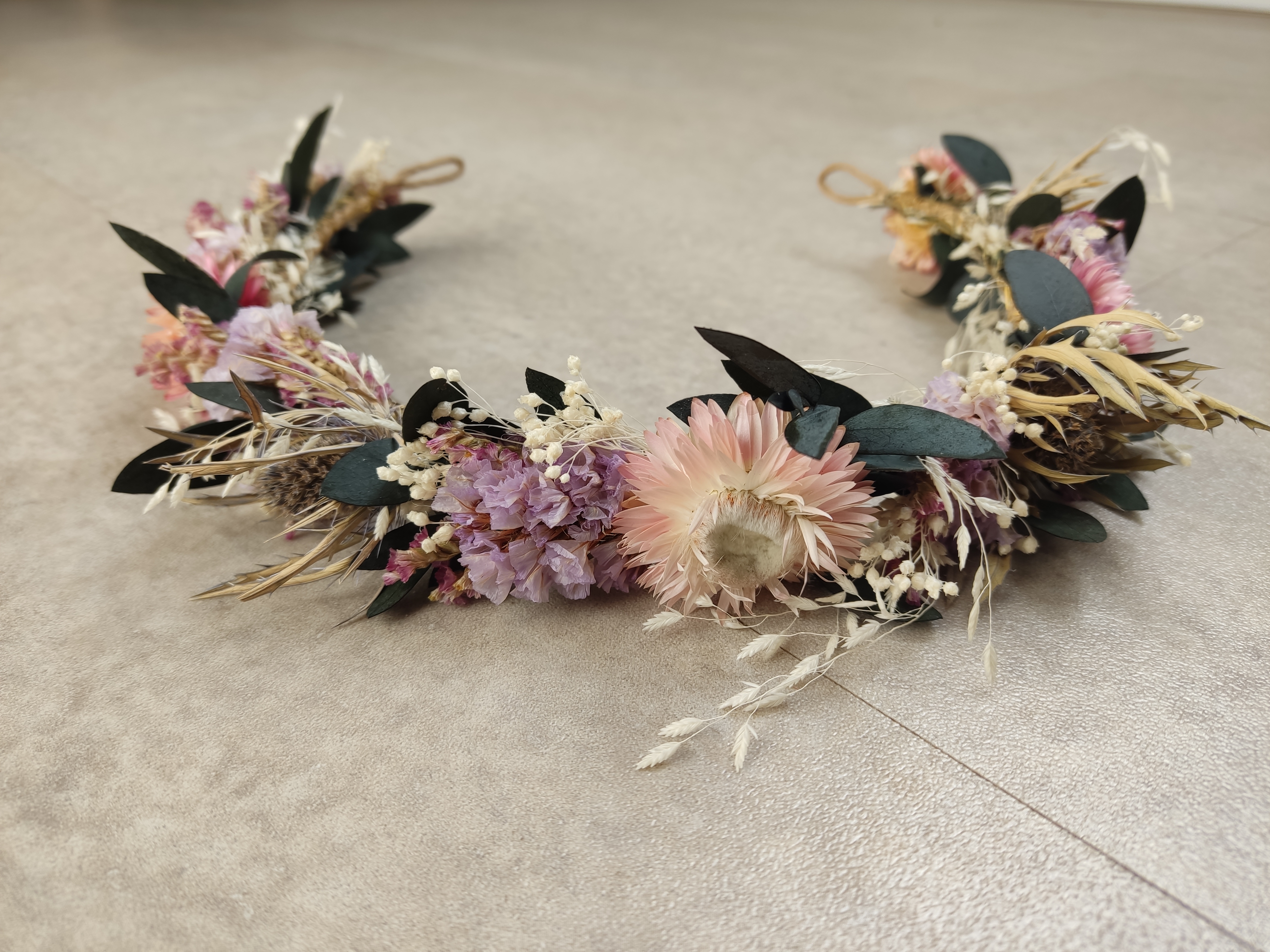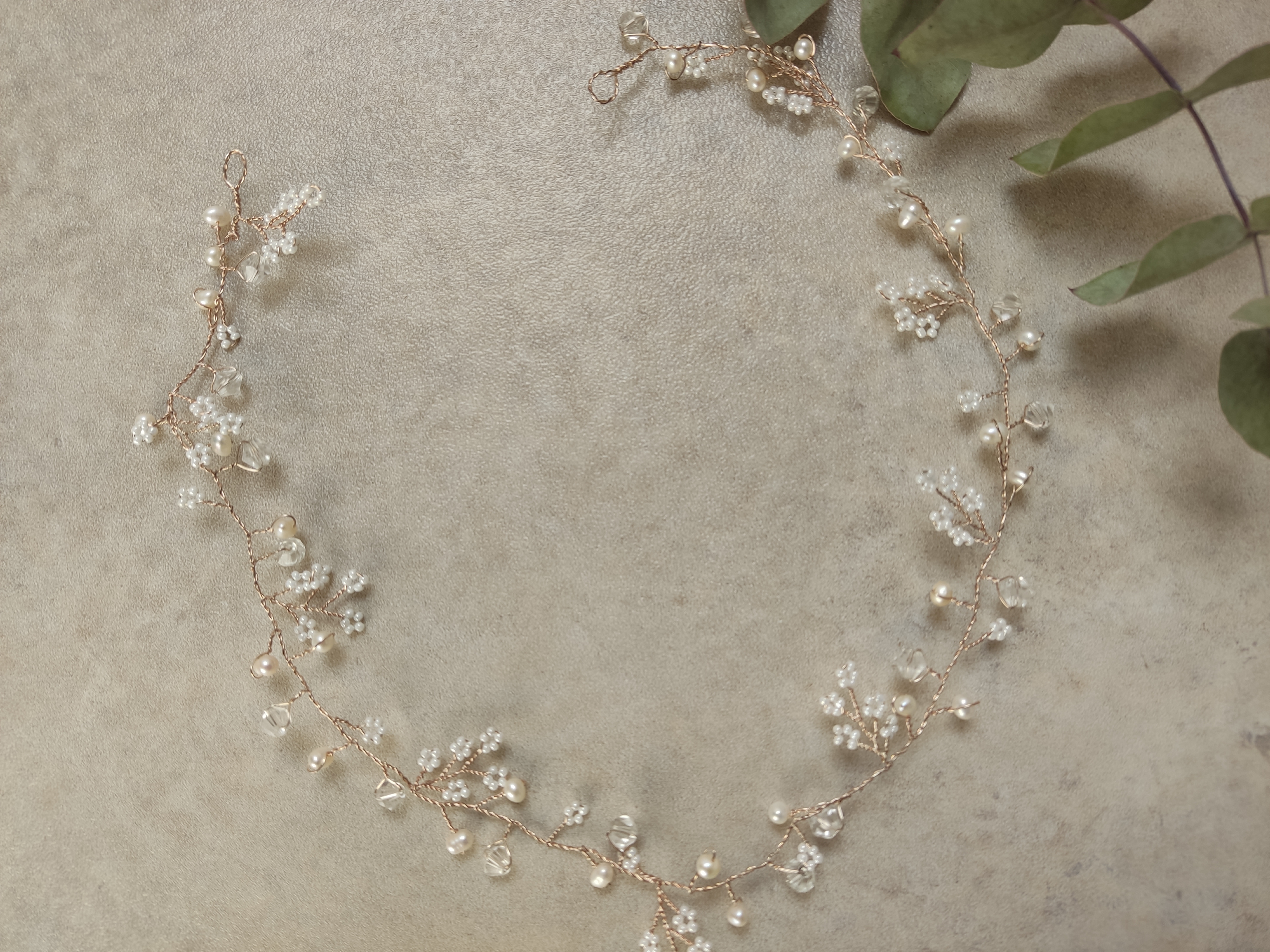 La Chia Schmuckkrank in rosegold mit zarten Perlen und Blumen