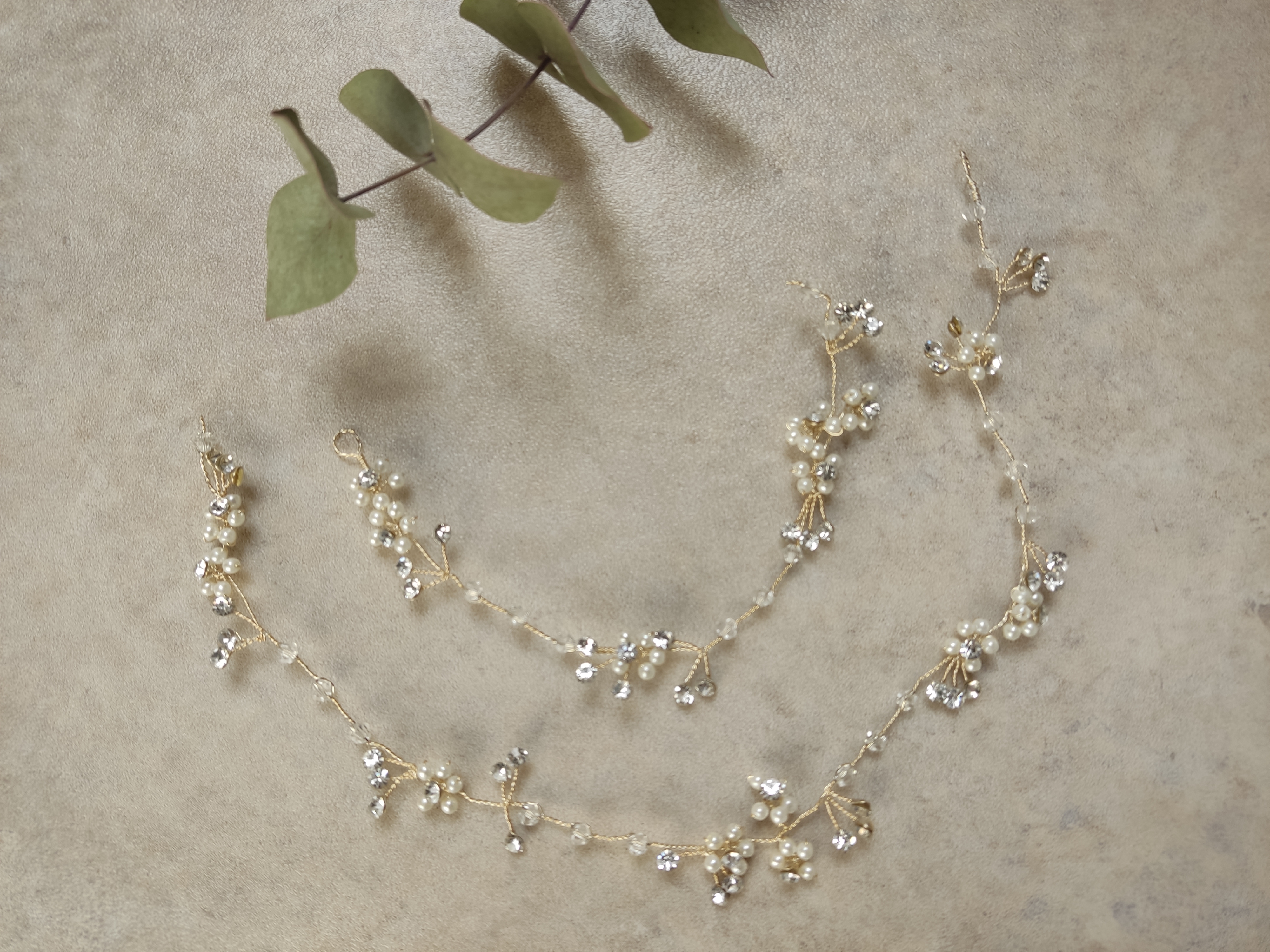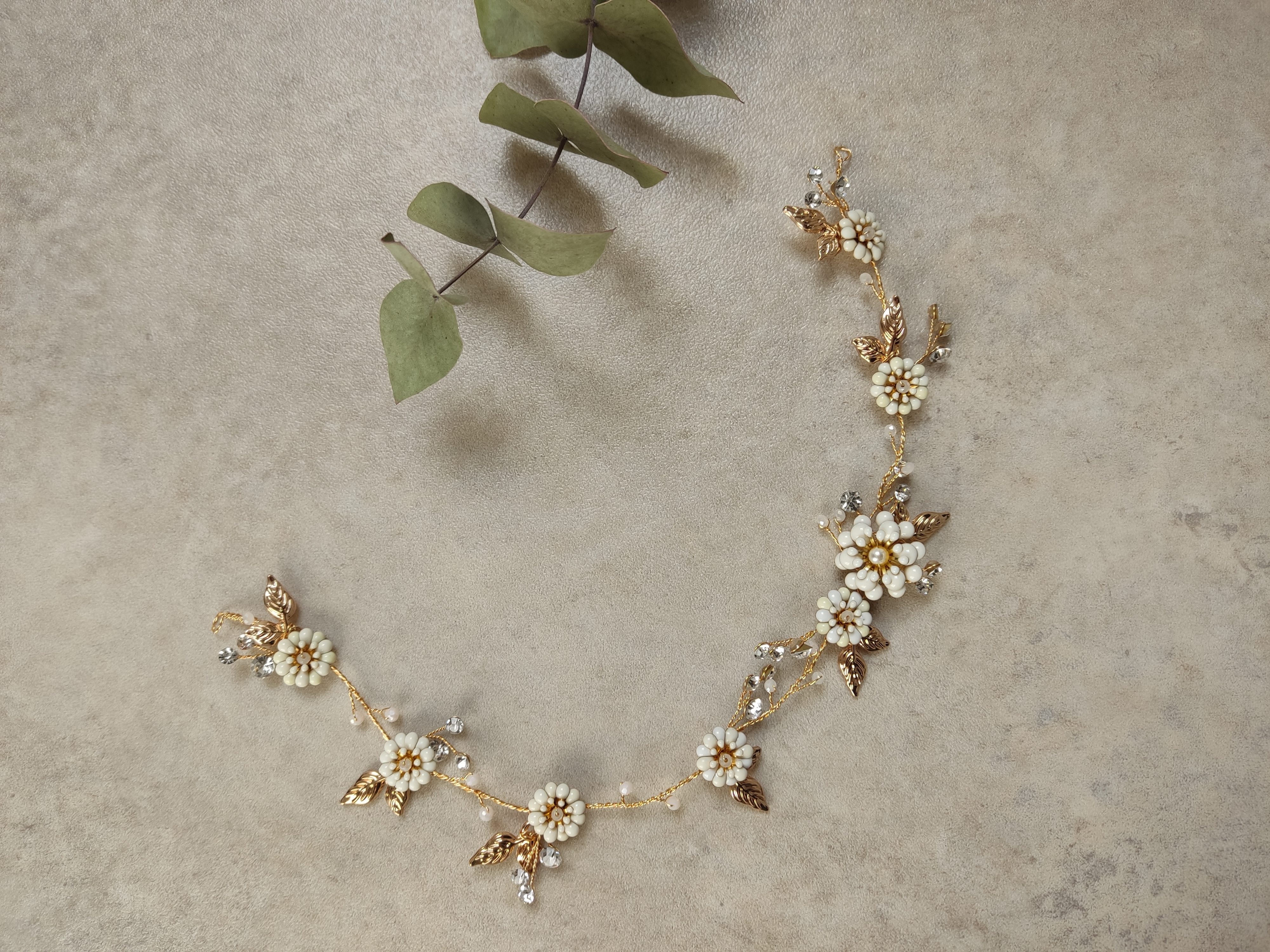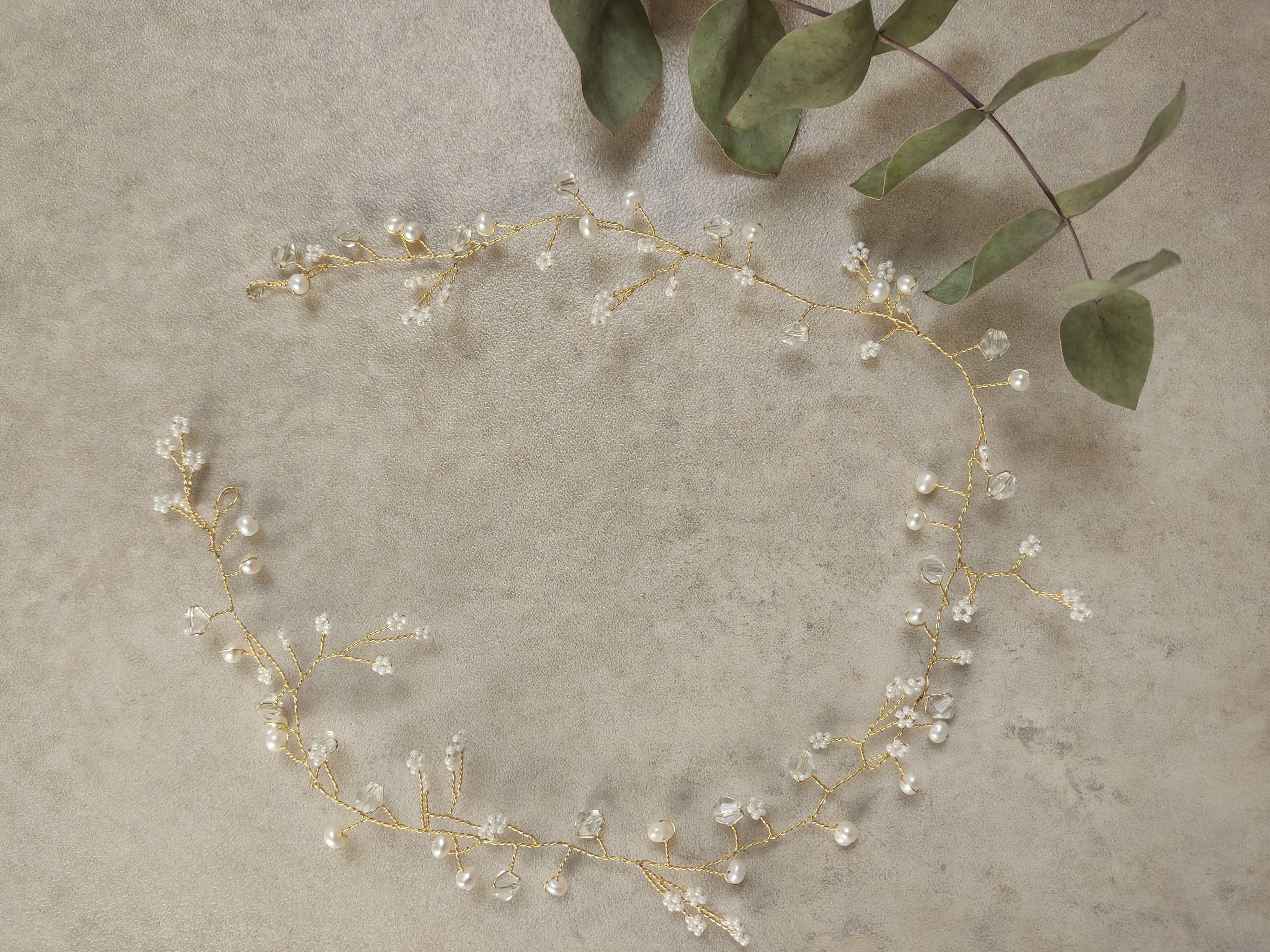 La Chia Schmuckkranz in gold mit zarten Perlen und Blumen